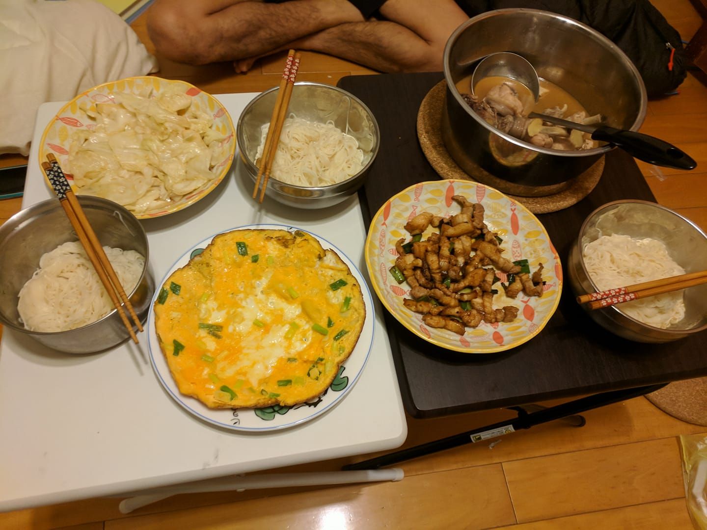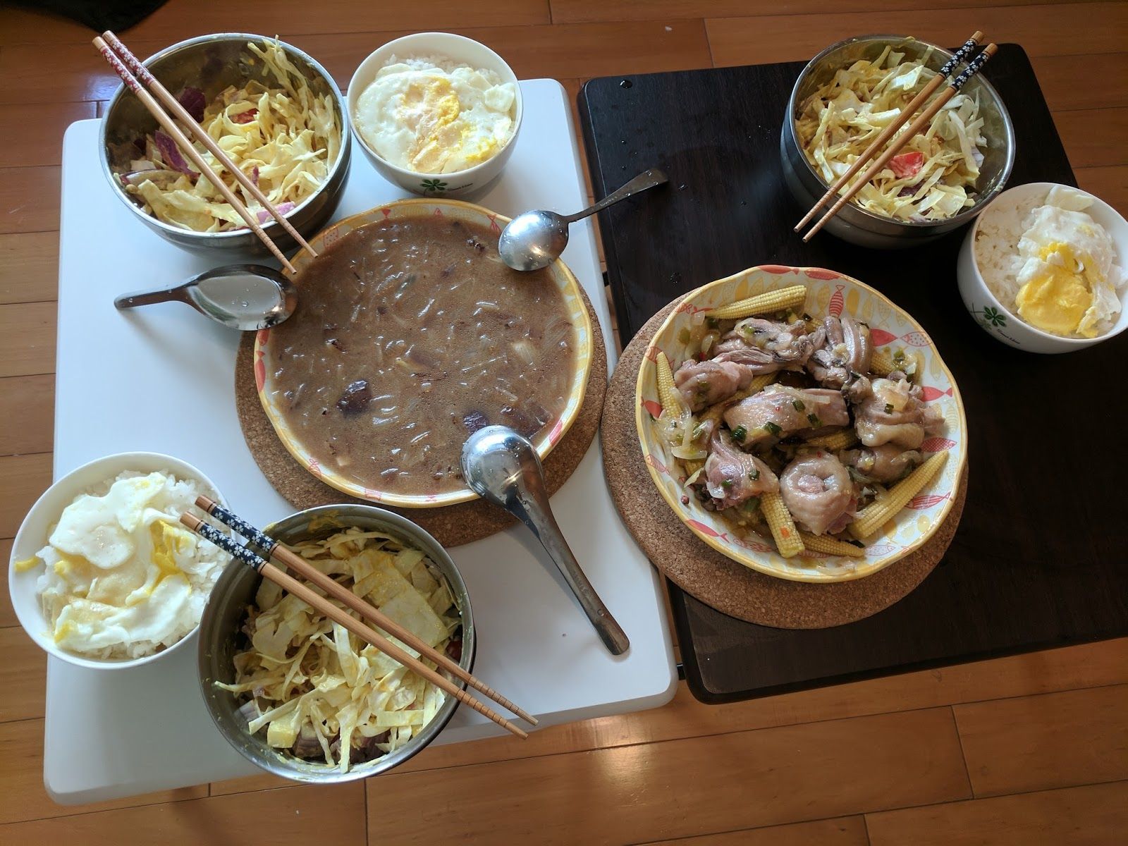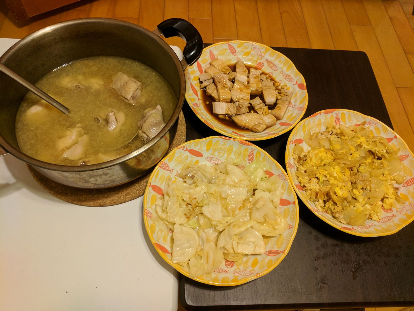 蒜頭雞湯(20/100)+洋蔥炒蛋(21/100)+蒜泥白肉(22/100)+炒高麗菜(23/100)