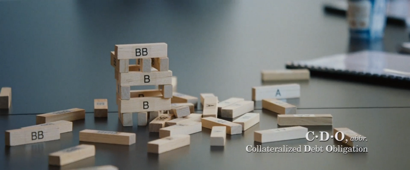 正如同電影開頭中,索羅門兄弟銀行的路易斯·拉涅利所講的:「你們都有普通的住房抵押貸款。固定利率,三十年期。風險小、回報低,對吧?但當你把成千上萬的貸款綁在一起,突然間投資收益上升了但風險依然很小,因為它們是住房抵押貸款。誰會不還住房抵押貸款呢?」