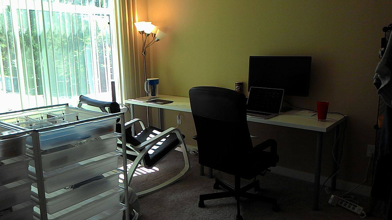 這次來美國住的地方是 Mountain View 的一間公寓,原本總共有三人(哥哥、他室友和室友女友),我一來等於是直接住進哥哥的房間,順便霸佔他的床 XD。不過因為整個空間挺寬敞的,即使多一個人也不會覺得擠,而且裡面充斥著各種大螢幕、食物、可以往後傾躺的椅子、超軟的床,廚房的功能也相當完備,感覺老哥根本就按照自己腦中的設想把這打造成屬於自己的天堂了......。然後因為飛機上的十二小時幾乎都在看電影沒什麼睡,也因此晚上抵達後順著睡晚覺就不用調時差,所謂專業應該就是如此吧 lol